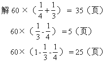 答:两天共看35页,第一天比第二天少看5页,还剩下25页没看。