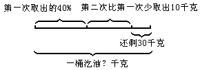 ★★★例10有一桶油,第一次取出40%,第二次比第一次少取出10千克,桶里还剩30千克油。这桶油原来有多少千克?
