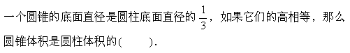 14. 一个圆柱体削成一个与它等底等高的圆锥体, 削去的部分是圆锥体的(      )%.