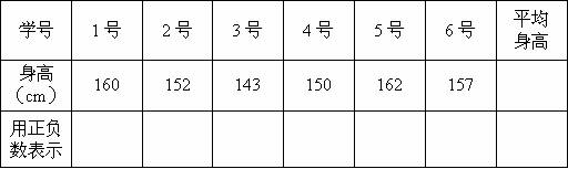 4、下面是六(1)班6名女同学的身高。以她们的平均身高为标准,把平均身高记为0cm,超过的身高记为正,不足的身高记为负,用正负数表示她们的身高。