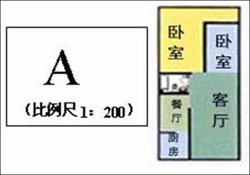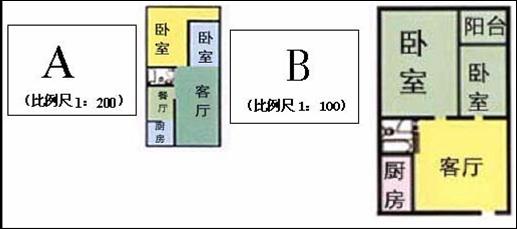 这是按1:200的比例尺画的老师新家的平面图。