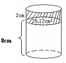 如图,一个圆柱高8厘米,如果它的高增加2厘米,那么它的表面积将增加25.12平方厘米,求原来圆柱的体积。(5分)