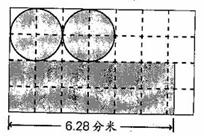7、用一块长方形铁皮做一个圆柱体罐子,如图(每个方格的边长表示1分米),剪下图中的涂色部分可以围成一个圆柱,将它放在桌上。(铁皮厚度及接缝处忽略不计)(9分)