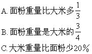 43.粮店运来大米15吨,面粉20吨,那么 [ ]