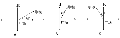 广场为观察点,学校在北偏西30°的方向上,下图中正确的是( )。