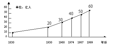 (2)世界人口从20亿起每增长10亿,分别用了( )年、( )年、( )年。 (3)从图中,你还能获得哪些信息?
