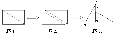 26.小明将一张矩形纸片沿对角线剪开,得到两张全等直角三角形纸片(如图2),量得他们的斜边长为10cm,较小锐角为30°,再将这两张三角纸片摆成如图3的形状,使点B、F、D在同一条直线上,F为公共直角顶点。然后小明又将图(3)中的△ABF沿直线AF翻折到图(4)的位置,点B落在FD边上的B1点,AB1交DE于点H。