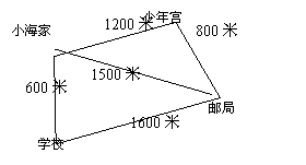 小海从家步行经过少年宫到邮局全程需0.8小时;如果他以同样的速度从家直接到邮局要多少时间?