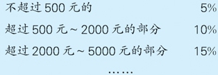 5.2008年我国公布了新的个人收入所得税征收标准。个人月收入2000元以下不收税。月收入超过2000元,超过部分按下面的标准征税(如图)。黎明老师这个月缴纳了35元税款,他这个月的收入是多少元?
