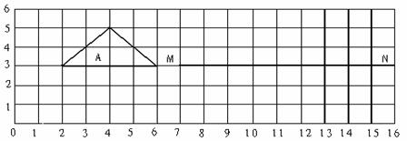 ⑵画出图形A向右平移7格后,得到的图形B;然后,再以MN为对称轴,画出图形B的轴对称图形。
