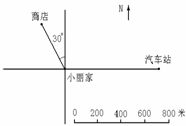 (3)学校在小丽家南偏西45°方向600米处,请标出学校的位置。