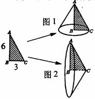 6、把三角形ABC沿着边AB或BC分别旋转一周,得到两个圆锥(如图1、图2),(单位:厘米)谁的体积大?大多少立方厘米?(3分)