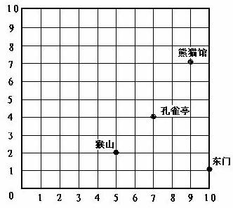 ⑵暑假,小明一家游览了公园,活动路线是(10,1)→(5,2)→