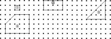 下图是间距为1cm的格点图(相邻四个点连成的正方形边长为1cm)。小丽在格点中设计了四个格点多边形,请你也在图中设计一个格点多边形,标上序号“⑤”。