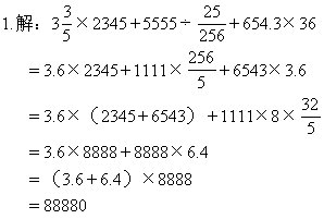 ,马上就应该知道它可以化为3.6;而3.6与36只差一个小数点,于是,又容易想到把“654.3×36”变形为“6543×3.6”,完成了这步,就为正