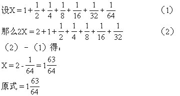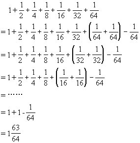说明:解法一是求等比数列前n项和的一般方法,这种方法本报217期第一版“好伙伴信箱”栏中曾作过介绍。由于本题中后一个加数总是前一个加数的一半,因而,只要添上一个最小的加数,就能凑成“2倍”,也就是它前面的一个加数,这就不难想到解法二。