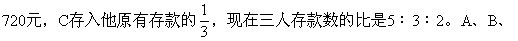C三人现在的存款分别是( )元、( )元和( )元。