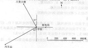 ⑵百货大楼在学校( )偏( )( )度方向( )米处。