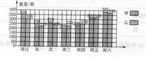 ⒉龙城超市上个星期售出的甲、乙两种品牌的饮料箱数如下图。