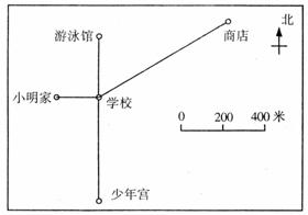 (3)在学校的正北方向700米的地方有一个体育馆,请在图上标出体育馆的位置。