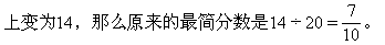 ★★★例65 一个最简分数,如果把它的分子扩大4倍,分母缩小5倍。就变成14。这个分数是什么?
