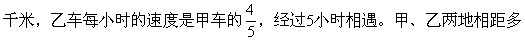 千米,乙车每小时行多少千米?(武汉市江汉区滑坡路小学)