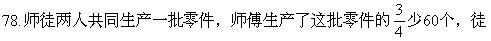 76.师徒两人合作生产一批零件,师傅每小时生产40个,徒弟每小时生产30个,如完成任务时徒弟正好生产了450个,这批零件共几个?(武汉市青山区)