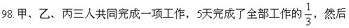 甲休息了3天,乙休息了2天,丙没有休息。如果甲一天的工作量是丙一天工作量的3倍,乙一天的工作量是丙一天的工作量的2倍,那么这项工作,从开始计算起,是第几天完成的?(南昌市外国语学校)