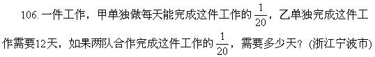 105.一条公路长1500米,单独修好甲要15天,乙要10天,两队合修需几天才能完成?(浙江江山市)