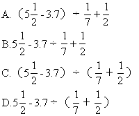 ★★3.20与3.1的差的6倍,再除以0.7,商是多少?正确的列式是( )。