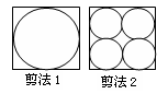 29. 从一个正方形铁皮上分别剪下不同规格的圆片,剩下的废料( )。A、剪法1多 B、剪法2多 C、同样多