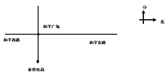 (1)市供电局位于和平广场( )面200米,这幅图的比例尺是( )。
