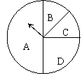 81. 如图,旋转圆盘上的指针,指针落在A区域的可能性是,落在( )区域和( )区域的可能性同样,都是。