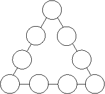 1、把1-9九个数字填入下图,使三角形每条边上的四个数的和都是20。
