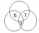 3 三个圆圈两两相交形成七个小区域,分别填上1---7七个自然数,在一些小区域中,自然数3,5,7三个数已经填好,请你把其余的数填到空着的小区域中,要求每个圆圈中的四个数的和都是15。(先看看15可以用怎样的组合而成,由几个数字相加连接)