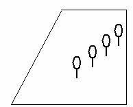 5 小明家附近有一个公园,园中有4棵树排成了一行。如图:想一想能不能把公园分为4块大小形状相同,而且每块上都有一棵树?