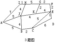 3.一个城市交通道路如图,数字表示各段路的路程(单位:千米),求出图中从A到F的最短路程.