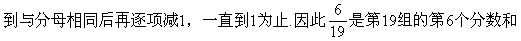 将分母相同的分成一组,第1组1个数,第2组3个数,第3组5个数,……,从第2组起每一组比前一组多2个数,每一组分子的规律从1开始逐项加1,