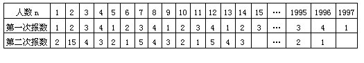 因为 1997÷4=499…1,所以排尾同学报1,而1997÷5=399…2,所以排头同学报2.