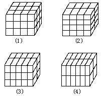 依次分割的小长方体的个数是36、32、30、24,则图(4)分割的块数最少是24块,且恰好有16个两面涂红色的小长方体.