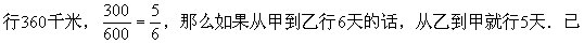 由于往返的路程相等,船从甲到乙每天航行300千米,从乙到甲每行航