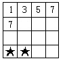 4.在右边方格表的每个方格中,填入一个数字,使得每行、每列以及两条对角线上的四个方格中的数字都是1,3,5,7,那么表中带★的两个方格中的数字之和等于_________ 。 |