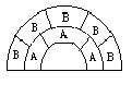 3.有三个圆心相同的半圆,它们的直径分别是1,3,5,用线段分割成8块(如图所示)。如果每块的字母代表这一块的面积,并且相同字母表示相同的面积,那么A:B_________ 。 |