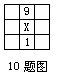 10.如图,九个小正方形内各有一个一位数,并且每行、每列及两条对角线上的三个整数的和相等,那么x=______.