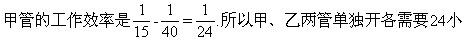 3.甲、乙两管单独开各需要24小时、40小时注满水池![]()
