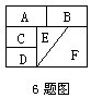 6.如图,把A,B,C,D,E,F这六个部分用5种不同的颜色着色,且相邻的部分不能使用同一种颜色,不相邻的部分可以使用同一种颜色,那么这幅图一共有______种不同的着色方法.