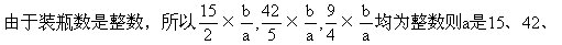 9的公约数,为了使装瓶数尽可能少,a取15、42、9的最大公约数