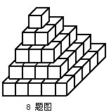 8.有55个校长为1分米的正方体木块,在地面上摆成如图所示的形式,要在表面涂刷油漆,如果与地面接触的面不涂油漆,干后将小木块分开,则涂油漆的表面积与未涂油漆表面积的比是_______.