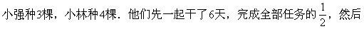 小林休息了9天,小强休息了6天,小红没休息,最后一起完成任务.所以,从开始种树算起,共用了多少天才完成了任务?小强种树占全部任务的几分之几?