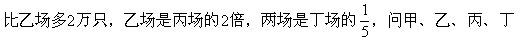 1.甲、乙、丙、丁四个养鸡场规模不同,共养了10万只鸡,其中甲场